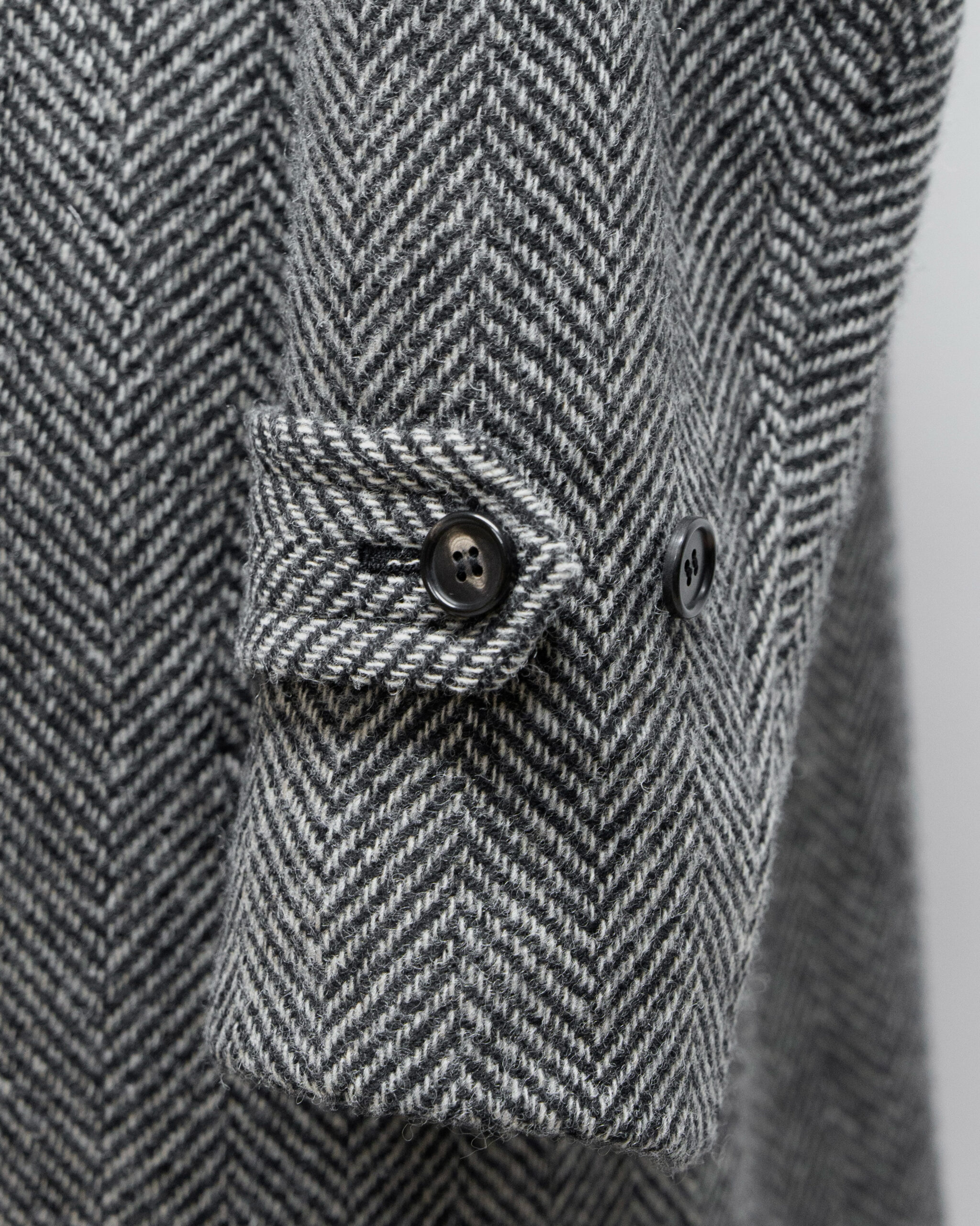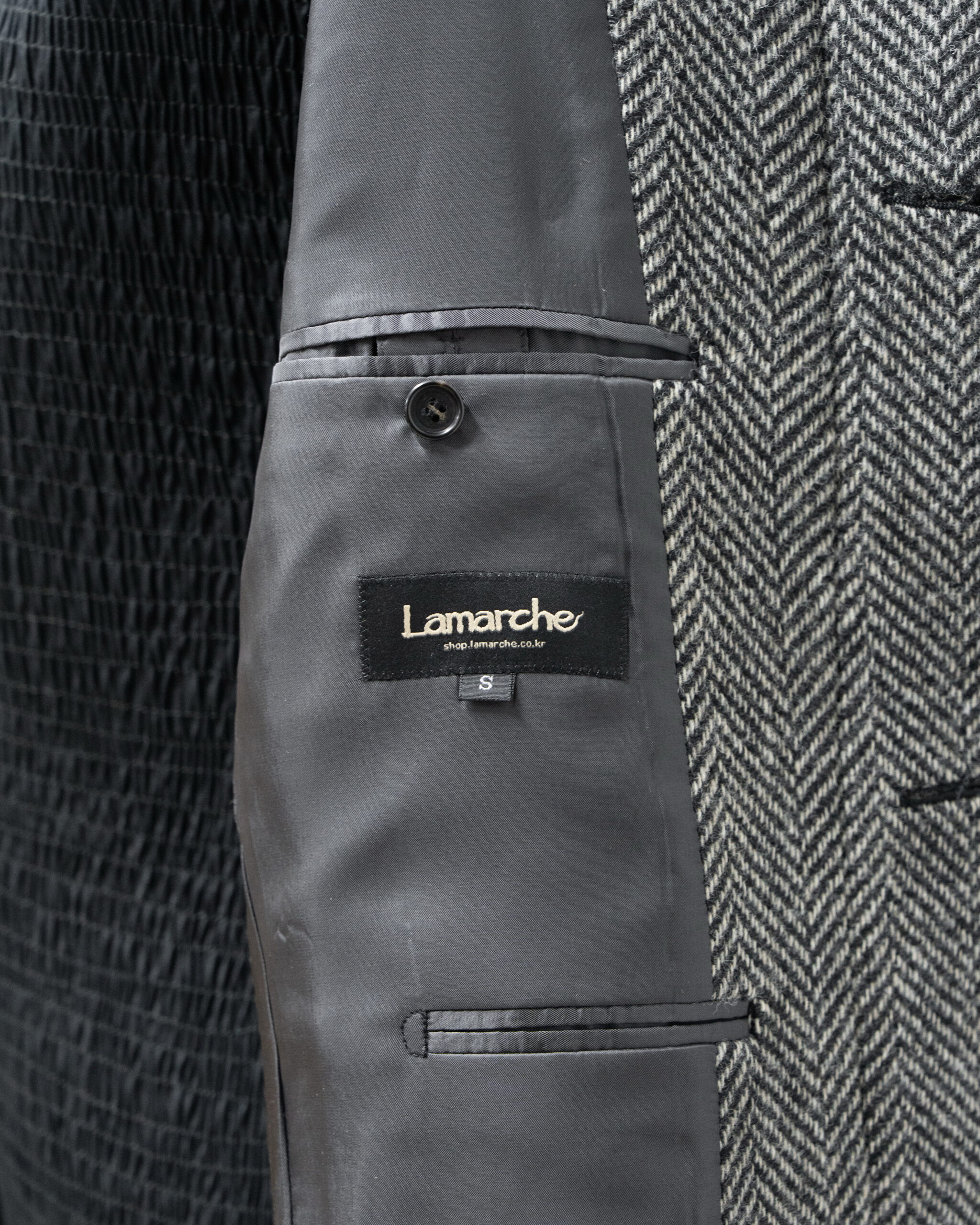 원단은 600그람 정도의 두툼한 이태리 로로피아나 그레이 헤링본 원단을 사용하였습니다.