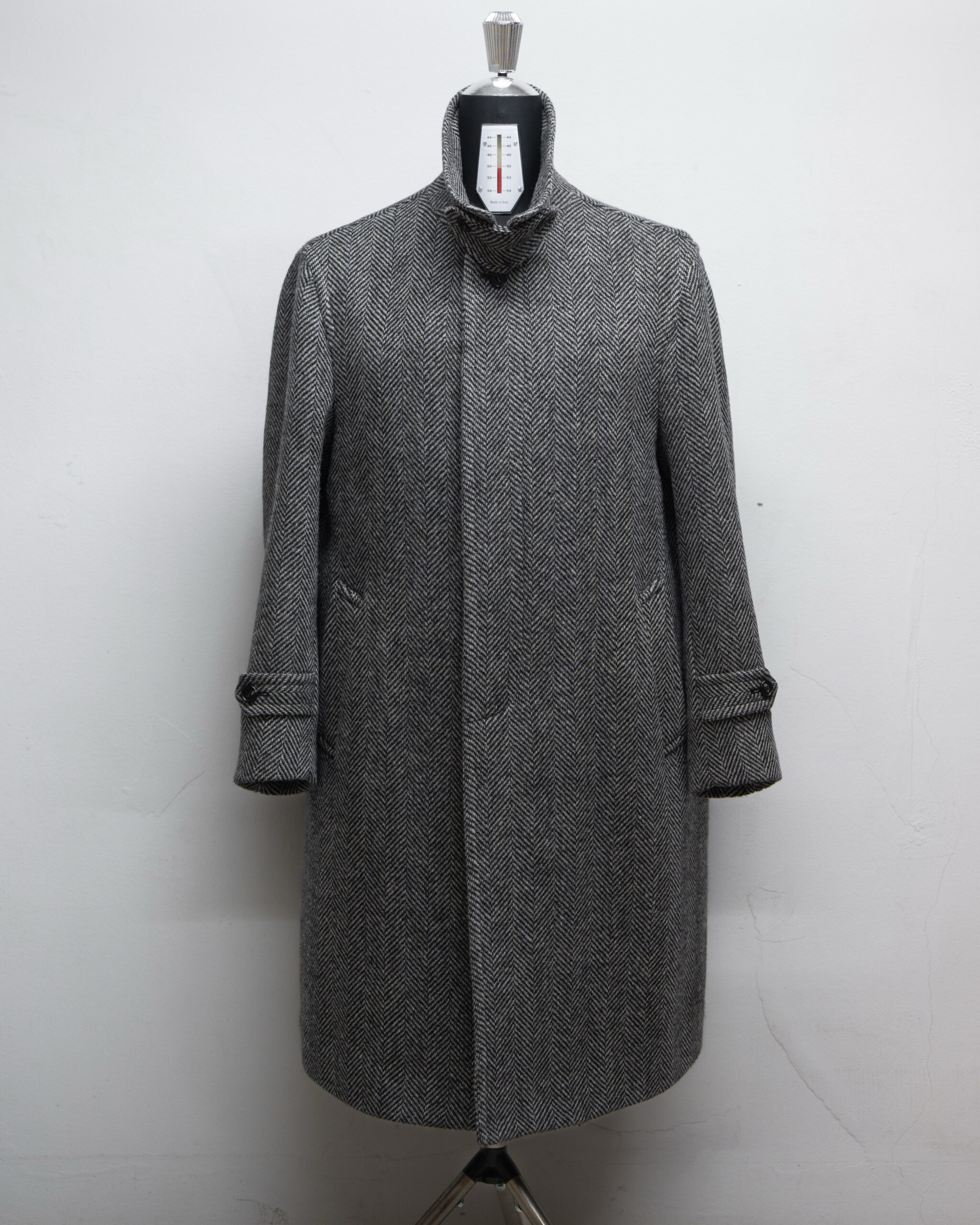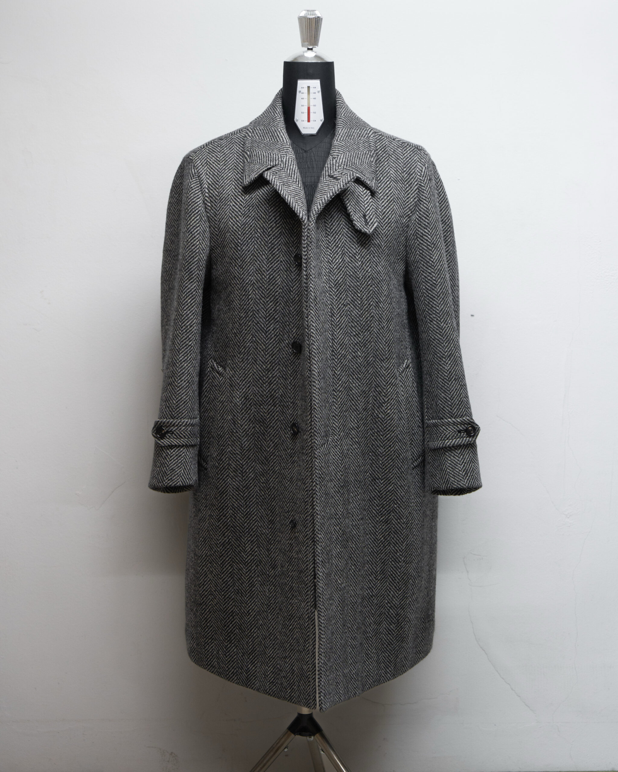 LMH-105 Sartoria Rovere X Lamarche 로로피아나 캐시미어울 그레이 헤링본 싱글 발마칸 코트